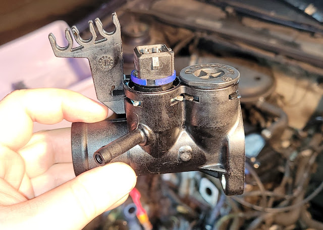 Um es kurz zu machen, das war keine gute Idee. Beim nächsten Drucktest läuft ein kontinuierliches Rinnsal aus dem Flansch. Spätestens jetzt ist das Teil definitiv im Eimer. Eine provisorische Lösung mit Kleber oder Dichtmasse erscheint uns unwahrscheinlich, darum muss der Passat erstmal ein paar Tage hier bleiben bis das neue Ersatzteil eingetroffen ist. Bloß gut das der Omega gerade passend frei ist und ausgeliehen werden kann.